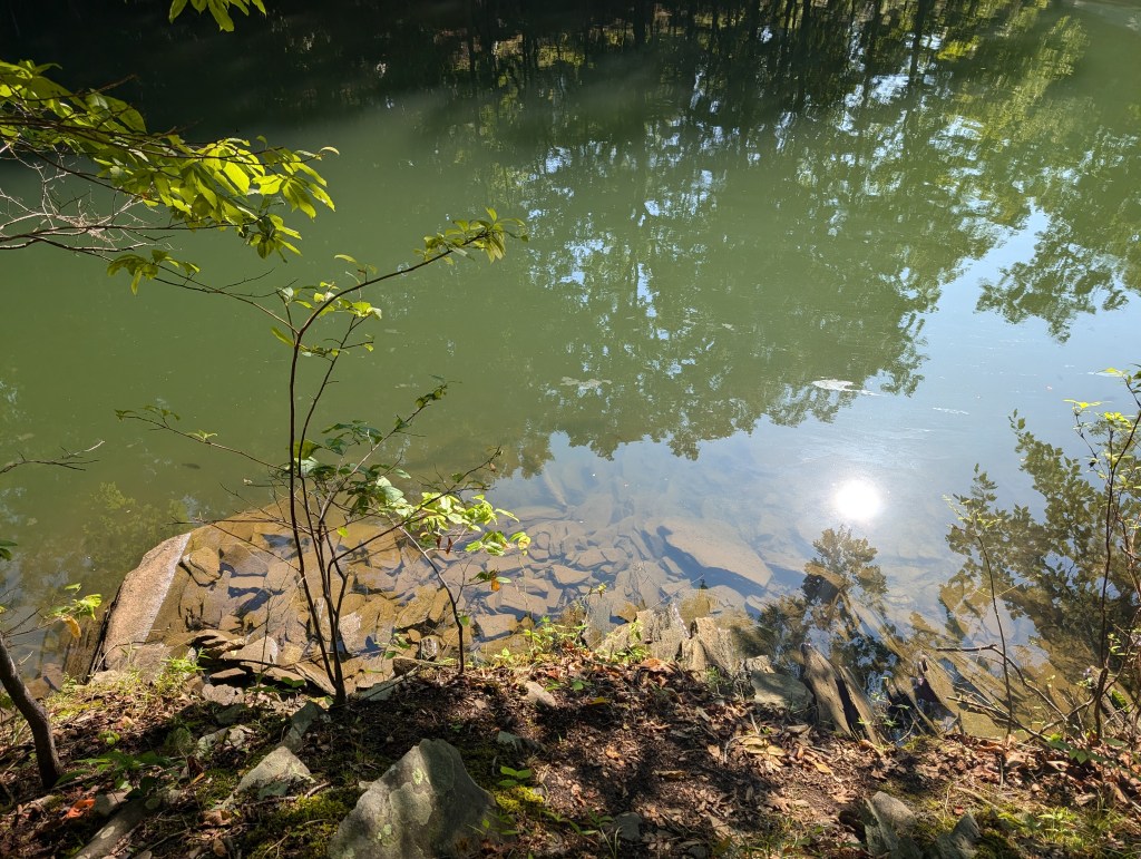 And just like that… A fish! A tiny little bass but a fish, nonetheless. Mark doesn’t want me to take the picture but it is cute. He releases the wriggling creature and I fight the urge to dive in after it. The water looks so cool and clean this morning.